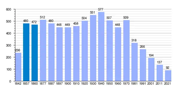 | Gráfica de evolución demográfica de Tejado[7] entre 1842 y 2021 |