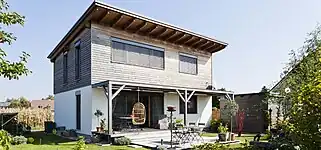 ![]() Vivienda unifamiliar con cubierta a un agua de pendiente reducida |