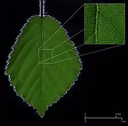 En las hojas, los haces vasculares están ubicados a lo largo del mesófilo esponjoso. El xilema está orientado hacia la cara adaxial de la hoja (generalmente hacia arriba)[4]. Esta es la razón por la cual los áfidos se encuentran en la cara inferior de las hojas, dado que el floema transporta azúcares producidos por la planta y se encuentran más cerca a la superficie superior .