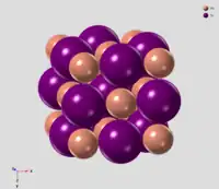 ![]() Celda unitaria del PbTe, con el Pb en naranja y el Te en magenta. | ||