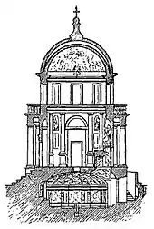 La edificación es de planta circular e imita a los martyria orientales, pues de hecho es un martyrium. Dispone de una columnata que envuelve a la cella, cubierta por una cúpula semiesférica. Esta columnata conforma un peristilo. También hay una clara referencia a la cultura griega en la forma circular, como un tholos griego.