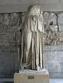 El templo contenía una estatua de culto dedicada al dios, esculpida por Eufránor.[7] Cerca del templo, durante las excavaciones, se halló un torso monumental de mármol, vestido con un largo quitón.[2] Parece ser la estatua en cuestión, mencionada por Pausanias.[8] Se expone en el Museo del Ágora de Atenas.