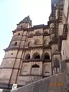 - Asher, 2003, p. 57. "petaled stone moldings, painted floral and geometric designs, cornices supported on lotus bud pendantive brackets, jewelled stone girdles, false balcony projections".