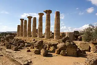 - Este artículo deriva de la traducción de su versión inglesa: Temple of Heracles, Agrigento, y de su versión italiana: Tempio di Eracle (Agrigento).
