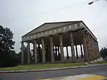 Una vez terminado, el templo era de estilo romano con cuatro lados iguales, de 25 m, con seis columnas de orden jónico-romano por lado, asentado sobre una plataforma o estilóbato de unos dos metros de altura, a la que se accedía, en sus cuatro fachadas, por doce escalones.[10] Estaba situado al fondo del Bulevar de Jocotenango, o del Hipódromo, y que con el tiempo pasó a llamarse Bulevar de Minerva y luego Avenida «Simeón Cañas»,[10] desde donde se le podía apreciar a larga distancia.