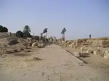 Desde la entrada principal, una larga avenida de aproximadamente 400 m de esfinges con cabeza de carnero conduce directamente al norte, al décimo pilono del recinto de Amón-Ra. Esta avenida está en proceso de restauración. Otra avenida de esfinges, también arrancando de la entrada, lleva 250 m al oeste para desembocar en la gran avenida de las esfinges de 3 km de longitud que conecta la puerta de Ptolomeo III Evérgetes I del recinto de Amón-Ra con el Templo de Luxor.