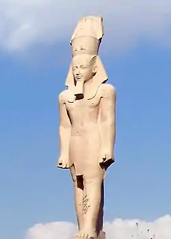 Esta representación colosal del faraón es probable que dominara la gran puerta sur del templo, cuyo aspecto ha eludido a muchas excavaciones arqueológicas en la zona, sus bases debe haberla perdido. Sólo el tamaño del coloso se puede considerar una puerta o un poste de Egipto con más de diez metros de altura, precedidos por una plaza, en la que se encontraba el coloso de Ramsés.