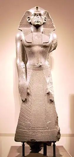 - Este grupo escultórico de granito gris se encuentra actualmente en exhibición en la Gliptoteca de Copenhague. Véase más adelante § El santuario de Ptah