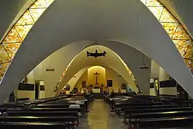 Esta obra es parte de la colaboración en arquitectura religiosa de los citados De la Mora, López Carmona y Candela en obras como los templos de San Vicente de Paul en Coyoacán o de San José Obrero en Monterrey.[3] Candela solucionó el techo del edificio mediante tres bóvedas por arista alineadas y separadas entre sí, con vitrales que iluminan el interior del templo en tonalidades ámbar.[3]
