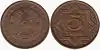 | 2 Tyin | 1993 | Cu+Ni+Zn | 17,27 | 2,26 | Escudo de armas - ҚАЗАҚСТАН РЕСПУБЛИКАСЫ - año de acuñación | 2 ТИЫН - ceca: ҚҰБ | ![]() |