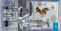 | Billetes | 200, 500, 1.000, 2.000, 5.000, 10.000 y 20.000 tenge | ||||