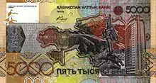 | 1000 tengé | Amarillo, Marrón, Naranja y Azul | ![]() |