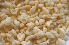 Se llama tenkatsu (天かす?) a unos trocitos crujientes de masa de harina frita presentes en la cocina japonesa, por ejemplo en el takoyaki, el okonomiyaki y el udon. El tenkasu también puede llamarse agedama (揚げ玉?).
