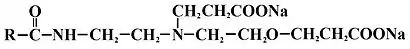 , con R = cadena de alquilo de 5-21 átomos de carbono. En muchos champús, por ejemplo, la betaína de cocamidopropilo (amidopropilbetaína del ácido graso de coco, "HT betaína") se utiliza como tensioactivo.