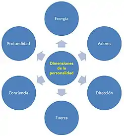 La personalidad también se refiere al patrón de pensamientos, sentimientos, ajustes sociales y comportamientos exhibidos consistentemente a lo largo del tiempo que influye fuertemente en las expectativas, autopercepciones, valores y actitudes de uno. La personalidad también predice las reacciones humanas a otras personas, problemas y estrés.[1][2] Allport (1937) describió dos formas principales de estudiar la personalidad: la nomotética y la idiográfica. La psicología nomotética busca leyes generales que puedan aplicarse a muchas personas diferentes, como el principio de autorrealización o el rasgo de la extraversión. La psicología idiográfica es un intento de comprender los aspectos únicos de un individuo en particular.