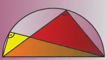 El segundo teorema de Tales de Mileto es un teorema de geometría particularmente enfocado a los triángulos rectángulos, las circunferencias y los ángulos inscritos, consiste en el siguiente enunciado: