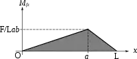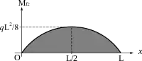 y el diagrama de momentos flectores es como el de la figura de la derecha, y viene dado por: