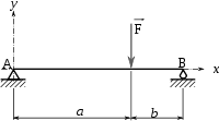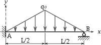 y el diagrama de momentos flectores es como el de la figura de la derecha. Las reacciones en los apoyos calculadas mediante las ecuaciones de ():