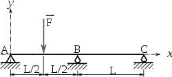 - Viga continua con carga puntual en el primer vano, siendo las dos longitudes iguales, en este caso, reflejado en la figura de la derecha el teorema de los tres momentos lleva a: