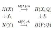 si es un punto, entonces recuperamos la afirmación anterior. Aquí es el grupo de Grothendieck de haces vectoriales complejos. Este diagrama conmutativo es formalmente muy similar al teorema GRR porque los grupos de cohomología de la derecha se sustituyen por el anillo de Chow de una variedad suave, y el grupo de Grothendieck de la izquierda viene dado por el grupo de Grothendieck de haces vectoriales algebraicos.
