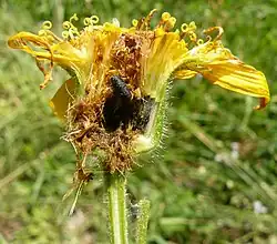 ![]() Pupario de T. arnicae en Arnica montana | ||