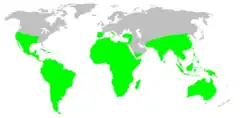 La gran mayoría son pardas o negras; sin embargo, algunas especies tienen una coloración más extensa, como el azul cobalto (Haplopelma lividum y Poecilotheria metallica), negro con rayas blancas (Aphonopelma seemanni y Acanthoscurria geniculata) o un azul metálico con un naranja vibrante en el abdomen (Chromatopelma cyaneopubescens). Su hábitat natural incluye la sabana, el desierto, la montaña, la selva lluviosa y el bosque nublado. Han sido divididas en tipos terrestres (que frecuentemente hacen excavaciones) y tipos arbóreos.