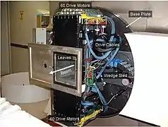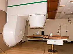 El Departamento de Oncología Radioterápica[32] opera un ciclotrón que produce neutrones rápidos al dirigir protones de 50,5 MeV hacia un objetivo de berilio. El ciclotrón UW está equipado con un sistema de entrega montado en pórtico y un MLC para producir campos moldeados. El sistema UW Neutron se conoce como Sistema de Terapia Clínica de Neutrones (CNTS).[33] El sistema CNTS es el típico de la mayoría de los equipos de terapia con neutrones. Se necesita un edificio grande y bien protegido para reducir la exposición del público a la radiación y albergar el equipo necesario.