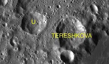 Por convención estos elementos son identificados en los mapas lunares poniendo la letra en el lado del punto medio del cráter que está más cercano a Tereshkova.
