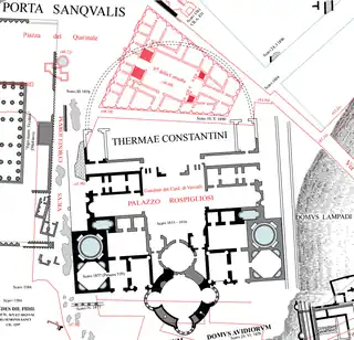 ![]() Las Termas de Constantino en la Forma Urbis de Rodolfo Lanciani (1901). | ||