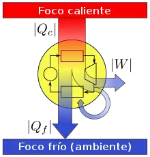 donde y son las temperaturas del termostato caliente y del termostato frío, respectivamente, medidas en Kelvin.