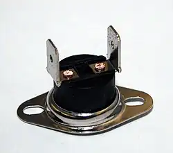 Consiste en dos láminas de metal unidas, con diferente coeficiente de dilatación térmico. Cuando la temperatura cambia, la lámina cambia de forma automáticamente, actuando sobre unos contactos que cierran un circuito eléctrico.