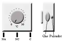 Un termostato es el componente de un sistema de control simple que abre o cierra un circuito eléctrico en función de la temperatura.