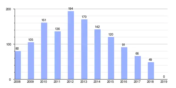 | Gráfica de evolución demográfica de Terque[2] entre 1842 y 2021 |