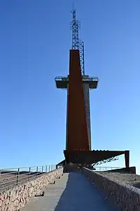 El Hito se encuentra detrás del edificio de Terrazas del Portezuelo. Su estructura de acero y hormigón, alcanza los 130 m de altura.