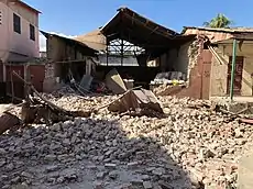 El primer ministro haitiano, Ariel Henry, declaró el estado de emergencia debido al elevado número de víctimas y los graves daños.[40] Al menos 2189 personas murieron debido al mortal terremoto.[41][42][43] El Hôtel Le Manguier en Los Cayos se derrumbó en el terremoto, matando a varias personas, incluido Gabriel Fortuné, el ex senador y ex alcalde de la ciudad.[44][45] Partes de la residencia del obispo católico en dicha ciudad colapsaron, matando a un sacerdote y dos empleados e hiriendo al cardenal Chbly Langlois.[46] Además de las muertes, al menos 12 268 personas han resultado heridas y 344 siguen desaparecidas.[41]