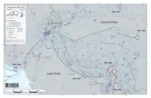 - Wheeler, R. L.; Rukstales, K. S. (2007). «Seismotectonic Map of Afghanistan and Adjacent Areas». Open File Report 2007-1104. United States Geological Survey. Archivado desde el original el 21 de enero de 2022. Consultado el 7 de octubre de 2023.