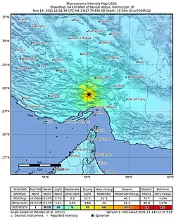|url=sin título (ayuda). Consultado el 16 de noviembre de 2021. - لندن, کیهان (14 de noviembre de 2021). «وقوع زلزله شدید در جنوب ایران؛ ۲ کُشته، قطع برق، ریزش کوه و هشدار سونامی!». KayhanLondon کیهان لندن (en fa-IR). Consultado el 16 de noviembre de 2021.