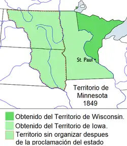 ![]() El Territorio de Minnesota especificando las partes del cual se formó en 1849 | ||||||||||||||||||||||||||||||||||||