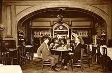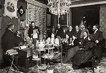 Tertulia importante, visitada y recordada también por Galdós en sus Memorias de un desmemoriado (1915-1916) fue la del Ateneo en su antiguo edificio de la calle de la Montera, denominada "La Cacharrería".[23] En aquellos años —entre finales del siglo XIX y la I Guerra Mundial— la lista de cafés madrileños con «ambiente literario» era tan larga como variopinta.[lower-alpha 3][23] En opinión de Ramón del Valle-Inclán, uno de los más notables era el Nuevo Café de Levante, que según el escritor gallego «ha ejercido más influencia en la literatura y en el arte contemporáneo que dos o tres universidades y academias». En el café de Fornos formó su tertulia Vital Aza, rodeado de artistas, escritores, gente de la farándula, toreros, futbolistas. Y en el café del Gato Negro, en la calle del Príncipe, Jacinto Benavente tuvo una tertulia modernista, en un saloncito de techo bajo, escasa iluminación, grandes divanes y, al fondo, un añadido que por las noches se abría y comunicaba el café con el Teatro de la Comedia.