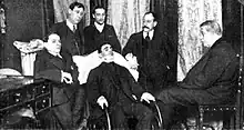 En las revueltas vísperas del 14 de abril de 1931, el omnipresente e incombustible José Ortega y Gasset conservaba intacta su tribuna en el café Granja El Henar,[31] en tanto que Gómez de la Serna clausuró temporalmente su «Sagrada Cripta», y la tertulia del café Regina era visitada a diario por la policía, donde futuros dirigentes de la Segunda República (como Manuel Azaña o Indalecio Prieto) sufren el asedio de los enviados de la vecina Dirección General de Seguridad en la Puerta del Sol:[32] el 14 de abril de 1931, muchos de los tertulianos de los cafés madrileños se convirtieron en «padres de la patria» en el Senado o en el Congreso, como fue el caso de Manuel Azaña o José Calvo Sotelo.[33]