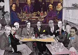 Dos tertulias fueron rivales en promocionar la vanguardia artística a principios del siglo xx: la ultraísta de Rafael Cansinos Assens en el café Colonial,[26] cerca a la Puerta del Sol, donde se daba cita un público heterogéneo de pintores, artistas y poetas extranjeros llegados a España con la Gran Guerra, y la de Ramón Gómez de la Serna, más histriónica, con figuras como José Bergamín o Pedro Emilio Coll, en los sótanos del antiguo café y botillería de Pombo, en la calle de Carretas, reunida los sábados por la noche, después de la hora de cenar, y que solía alargarse hasta las tres de la madrugada.[27][28]