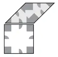 Un conjunto alternativo de teselados, también descubierto por Ammann, y denominado "Ammann 4" por Grünbaum y Shephard,[1] consta de dos piezas no convexas con bordes en ángulo recto. Uno de ellos consta de dos cuadrados superpuestos sobre un cuadrado más pequeño, mientras que el otro consta de un cuadrado grande unido a un cuadrado más pequeño. Los siguientes diagramas muestran las piezas y una parte de los teselados.