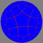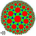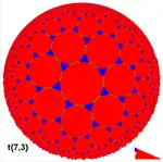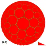 Algunos teselados regulares del plano hiperbólico (usando la proyección del modelo de disco de Poincaré) son: