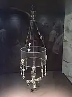 La corona votiva que se conserva en la sede de Barcelona del MAC iría suspendida sobre el altar de una iglesia como ofrenda de los poderosos de la época a Dios y a los santos, con el fin de obtener su protección. El análisis del conjunto del tesoro, en concreto la de las inscripciones, permite vincularlo a las mártires sevillanas Justa y Rufina, y constituye, en su conjunto, el tesoro de una iglesia o santuario dedicado a estas dos santas que sufrieron su martirio a finales del siglo III a. C.. La difusión de su culto se atribuye a San Isidoro de Sevilla, obispo de Sevilla entre el 600 y el 636.