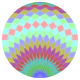 En particular, esto es cierto para polígonos regulares con muchos lados, en cuyo caso los paralelogramos son todos rombos. Para el tetracontágono regular, m=20, y se puede dividir en 190 piezas: 10 cuadrados y 9 conjuntos de 20 rombos. Esta descomposición se basa en una proyección en forma de polígono de Petrie de un hipercubo.