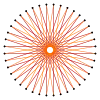 - Finalmente, transferir el segmento E40E1 (longitud del lado a) repetidamente en sentido antihorario en el circuncírculo hasta obtener el tetracontágono regular buscado.