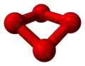 Los cálculos teóricos han pronosticado la existencia metaestable de las moléculas de O4 con dos formas diferentes: un "disco" cuadrado como ciclobutano o S4, y un "molinillo" con tres átomos de oxígeno que rodean un centrales uno en una formación plana trigonal similar a trifluoruro de boro.[6][7][8] Sea anteriormente señalado fuera que el "molinillo" del O4 tendría que ser la continuación natural del las series isoelectricas ,, , y análogo a ; aquella observación servida como la base para los cálculos teóricos mencionados.BO3−
