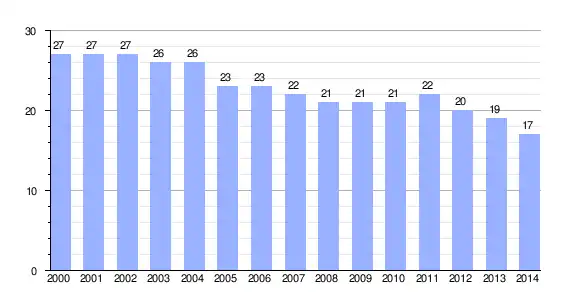 Población (2000-2014) según el nomenclátor de unidades poblacionales del INE.[1] |