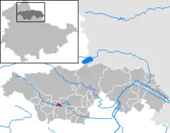 Se encuentra ubicado a poca distancia al sur de la frontera con el estado de Sajonia-Anhalt.