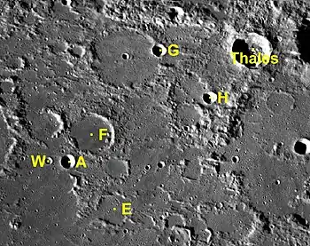 Por convención estos elementos son identificados en los mapas lunares poniendo la letra en el lado del punto medio del cráter que está más cercano a Thales.